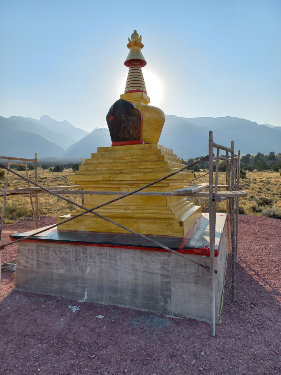 To accomplish this, we have been so grateful for the generous donations that have come from people all over the world, many of whom have a connection to Padmasambhava and his spiritual lineage, stupas and their significance, and to the Crestone spiritual community. We are especially grateful to the Pema Chӧdrӧn Foundation for their lead gift of $25,000. As of this writing, only $18,000 is needed to complete this auspicious effort. If you feel inspired to contribute to this final phase, please follow the link below to our donation page, which also includes a slide show of our progress to date.