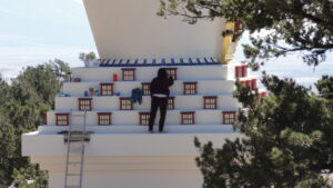 Stupa repair work August 18, 2010 / Tumblr Blog Barbara painting the Stupa doors and lotus petals today and in 1996.
